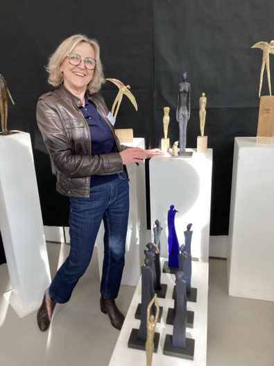 L’œuvre de Martine révèle sa maitrise de la matière et la finesse de son geste. Martine s’essaie également à d’autres techniques telles que la sculpture sur papier avec des silhouettes découpées en jeux d’ombres chinoises. Ces formes plus abstraites confèrent à son travail une identité soit moderne soit plus contemporaine. Ses sculptures prennent vie grâce à leurs attributs : Légèreté, Présence, Grâce, Accueil, tels sont leurs titres évocateurs de cette humaniste sincère.